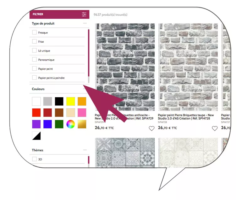- Sélectionnez vos critères (couleur, style, motif, tendance, pièce...)