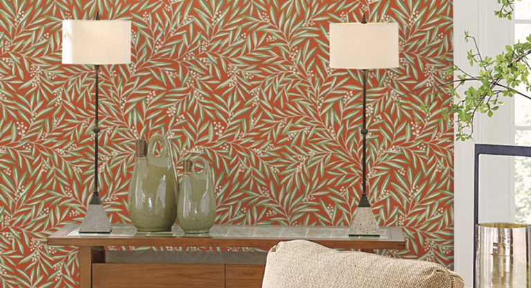 Papier peint Fleurs Romantiques rouge vert - Rifle Paper Co. 3 de York (Initiales) | Réf. INI-RF7546 INI-RF7546