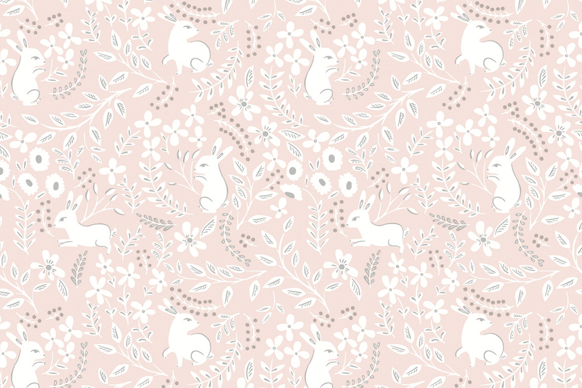 Papier peint Lapins Fleurs Feuillage rose - Tartine & Chocolat de Lutèce | Réf. LTC-36230403 LTC-36230403