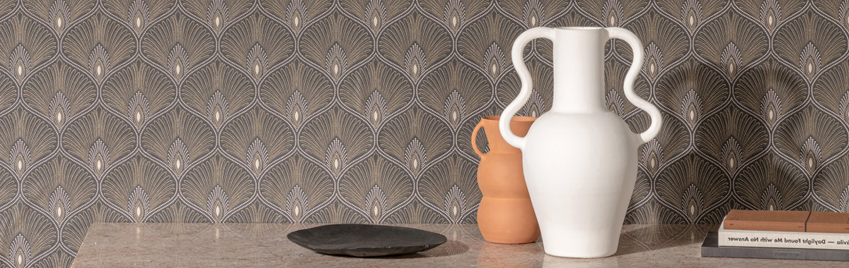 Papier peint Art Déco Gatsby noir ficelle irisé - The Texture Book de Masureel | Réf. MAS-GAT303 MAS-GAT303