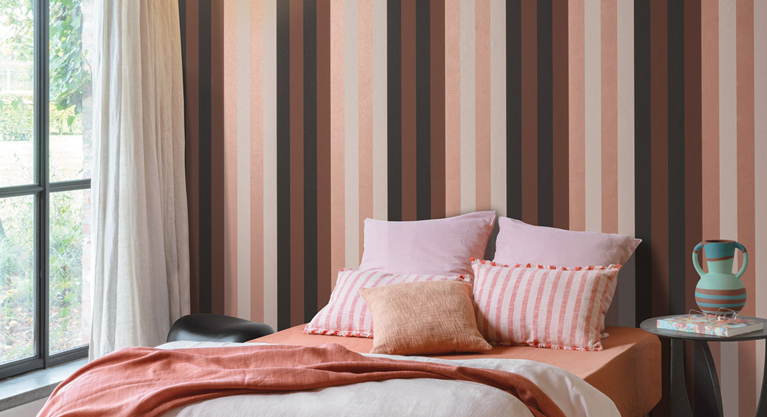 Papier peint Rayure Irisée Infinitus rose métallisé - Romance de Masureel | Réf. MAS-ROM504 MAS-ROM504
