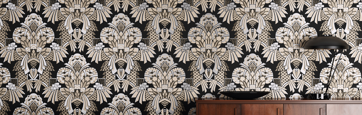 Papier peint Art Déco Vector anthracite doré - The Texture Book de Masureel | Réf. MAS-ORB701 MAS-ORB701
