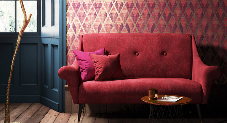 Papier peint Losange Ethnique Facet bordeaux cuivré - The Texture Book de Masureel | Réf. MAS-CAB504 MAS-CAB504