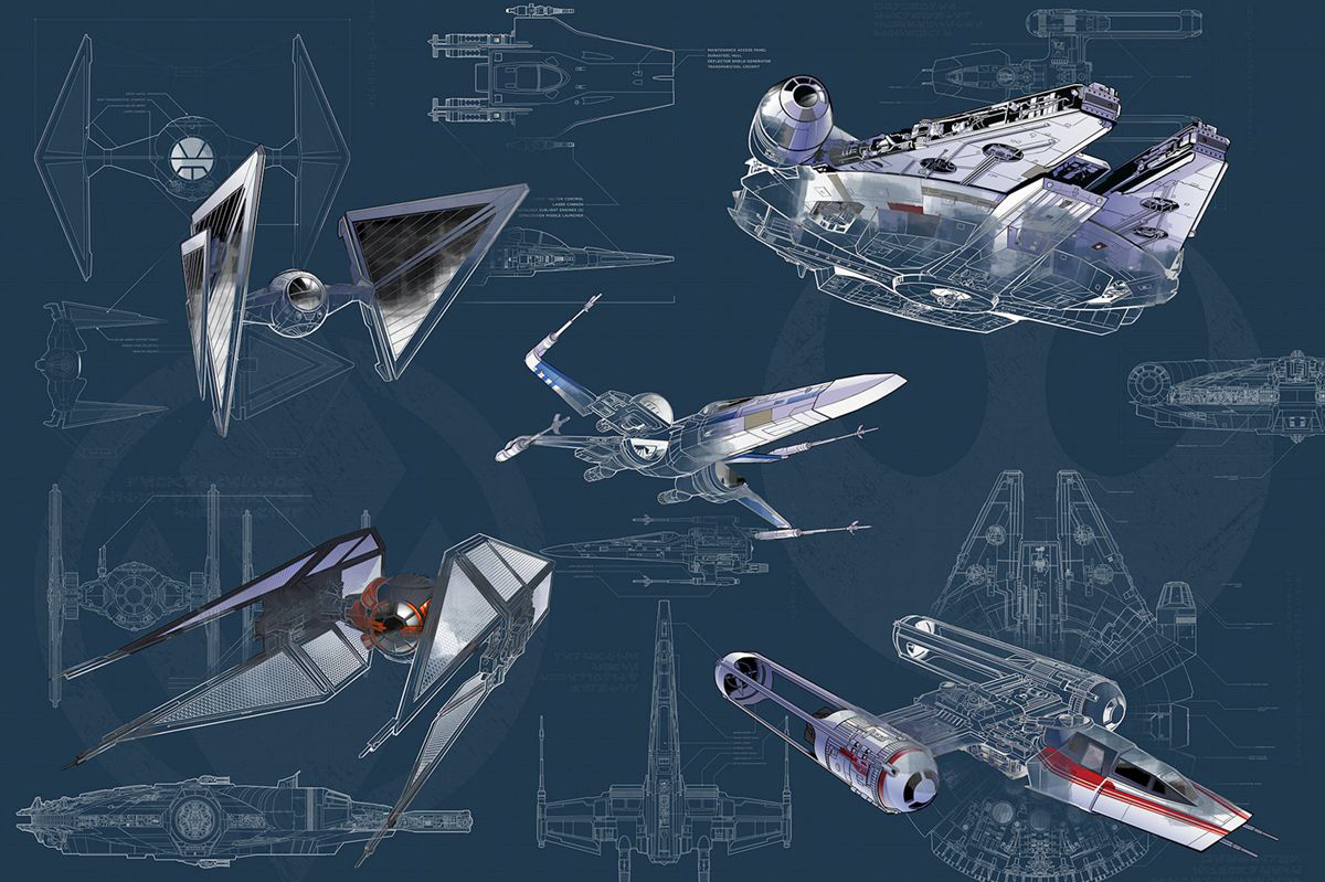 Papier peint Star Wars Blueprint Light - Papier peint Panoramique Komar KOM-DX8-078