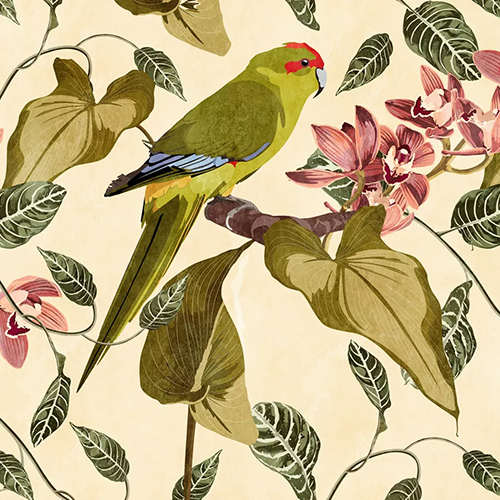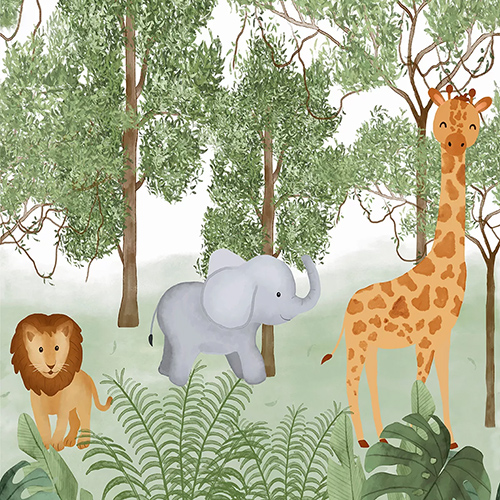 Lorsque des animaux sauvages se cachent au milieu des feuillages, on a alors l'impression que la tapisserie murale prend vie ! La jungle regorge alors de surprises et l'on entend tous les bruits de la faune : chant des oiseaux, cris de singes et bruits d'insectes.