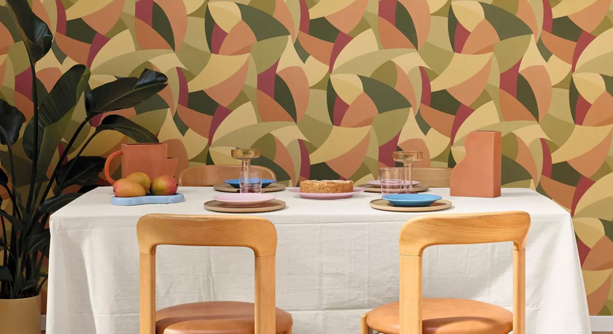 Jeux géométriques, courbes enveloppantes et motifs rythmés s’entrelacent pour créer une atmosphère contemporaine. Chaque papier peint est pensé pour structurer les murs avec élégance.