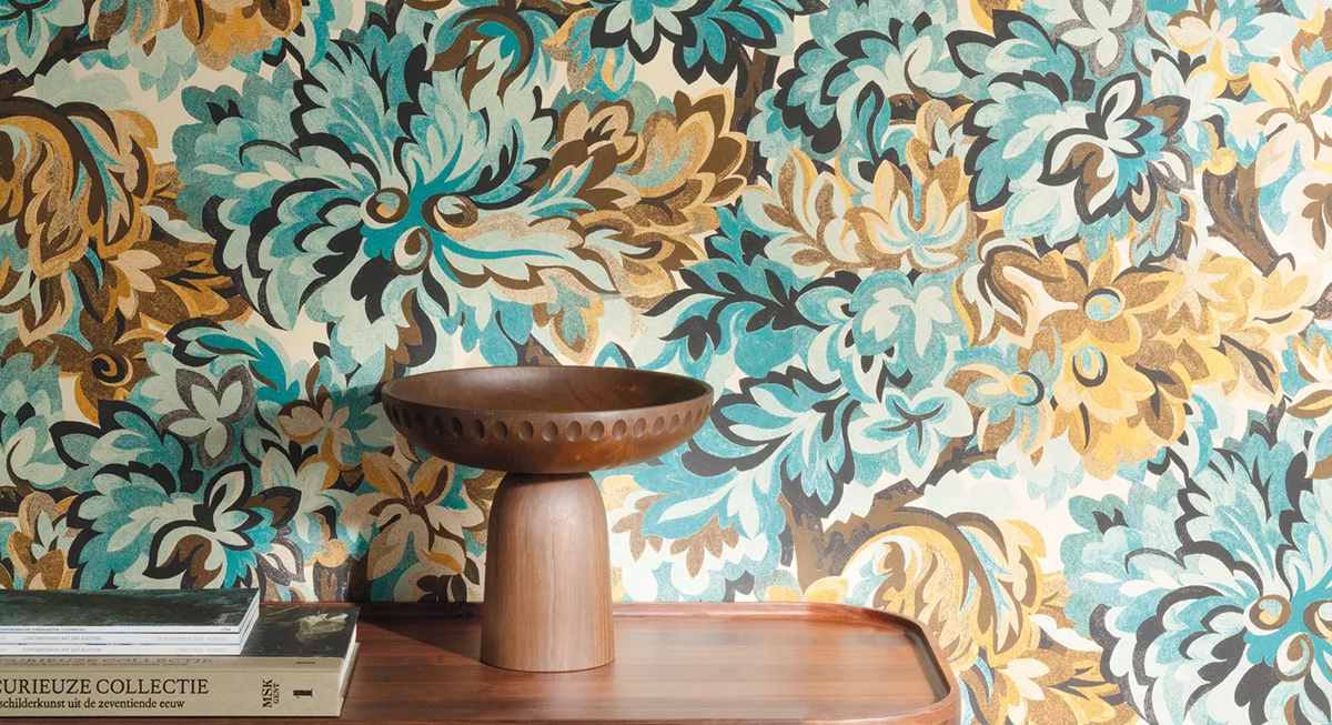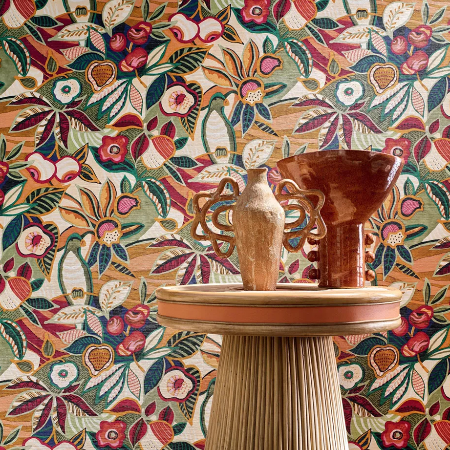 Le papier peint fleur graphique représente une solution de décoration murale qui harmonise de manière élégante la douceur des motifs floraux avec des éléments graphiques audacieux. Il est reconnaissable grâce à des fleurs stylisées et des formes géométriques, créant ainsi une esthétique visuelle distinctive.