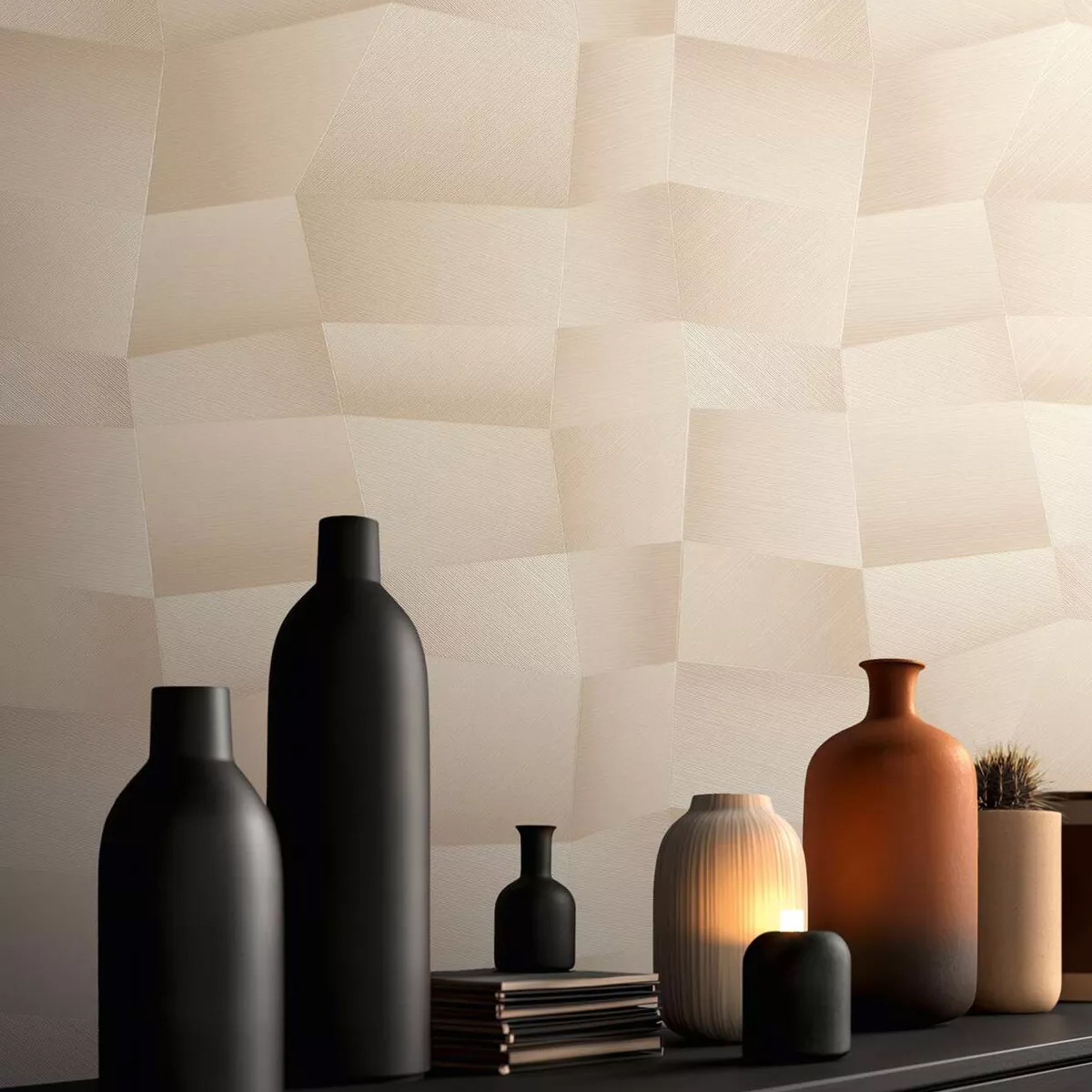 Une ligne décorative à l’esthétique maîtrisée et contemporaine illustrant des jeux de textures raffinés, des feuillages délicats et des effets matière subtilement travaillés.