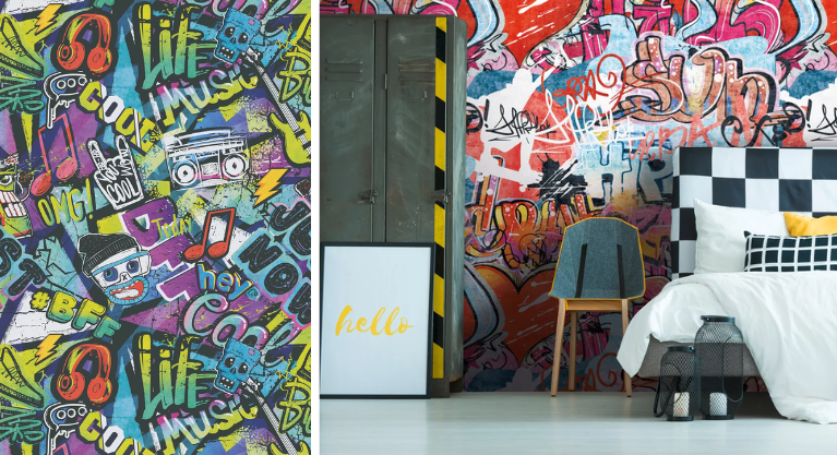 Le papier peint Graffiti Street Art est une fusion d'art et de décoration, apportant une touche urbaine et audacieuse à votre espace. C'est une façon unique et originale de décorer votre intérieur. Inspiré par le mouvement Pop Art, il met en avant des couleurs vives, des icônes culturelles et des motifs excentriques. Le Street Art, quant à lui, incorpore des graffitis, des motifs urbains, et des visuels provocateurs.