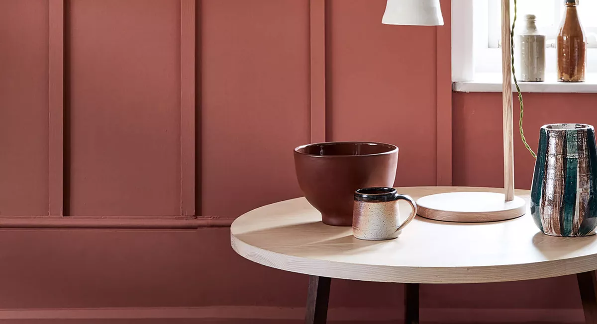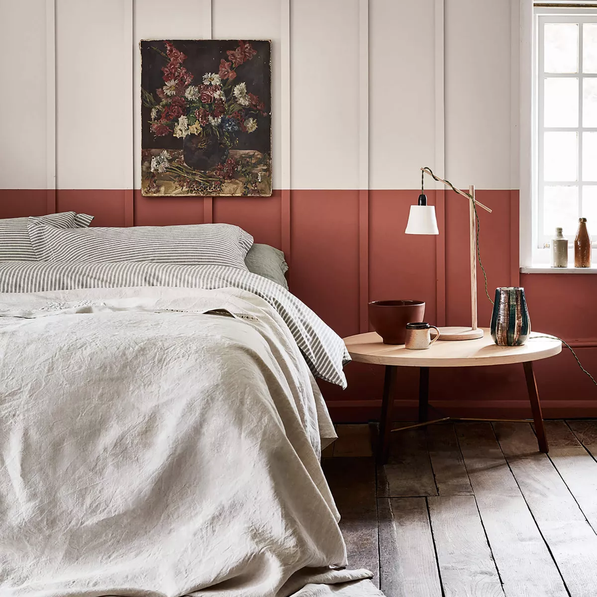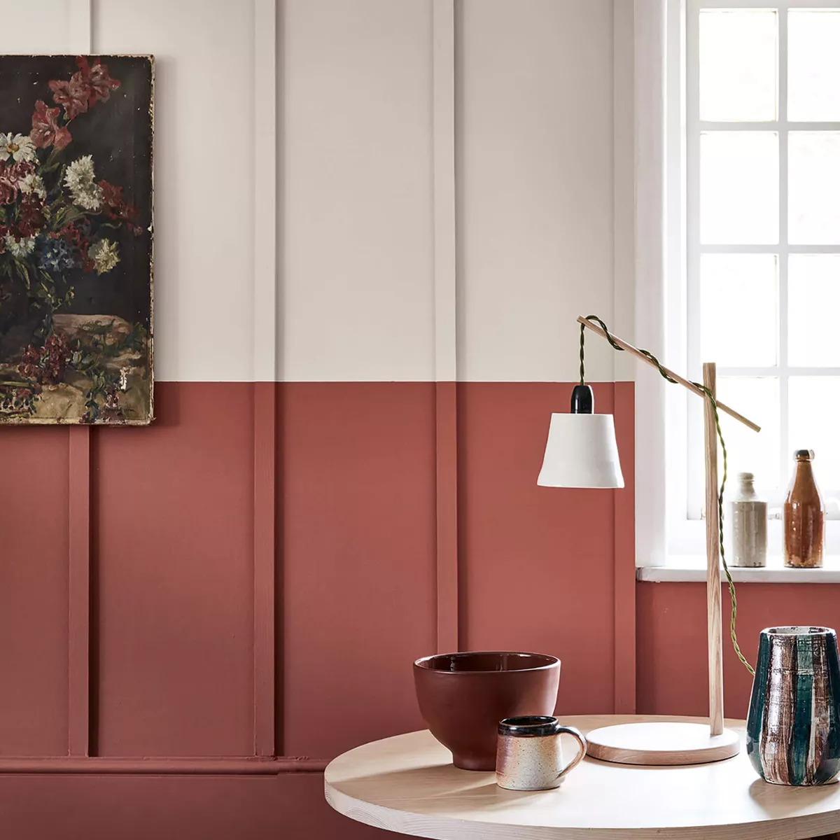 Pour aller plus loin, associez à votre peinture à un papier peint terracotta plus ou moins pigmenté pour créer un camaïeu.