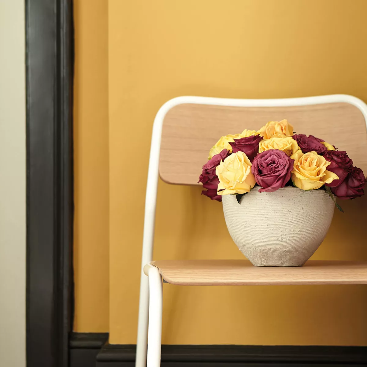 Cette couleur qui vacille entre le jaune et l’orange offrira une touche exotique à votre décoration. Vous retrouverez une sélection de peinture aux nuances plus ou moins vives qui apporteront de la chaleur dans votre salon et vous rappelleront les meilleurs plats orientaux dans votre cuisine. Pour une note contemporaine, laissez cette couleur dominer la pièce en l’associant à du mobilier plus neutre en bois ou osez l’excentricité en ajoutant une touche colorée avec des coussins rouge vif sur votre canapé. Laissez entrer la lumière dans votre intérieur avec cette peinture aux notes jaunes orangées et votre nouvelle décoration fera des envieux !
