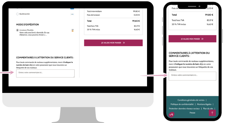 Une case "Commentaire" s'affiche avant de cliquer sur le bouton "Valider et Payer ma commande".