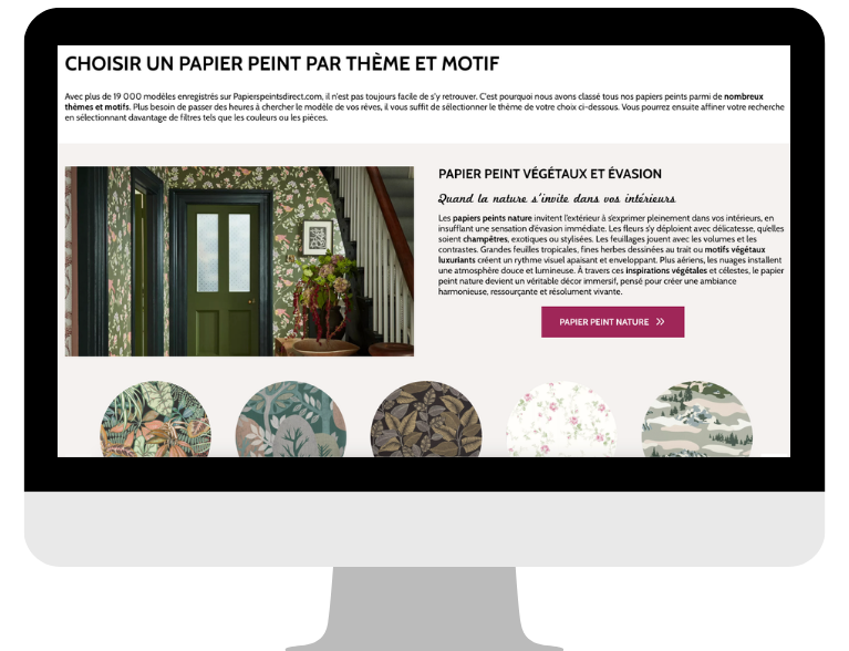 Pour être au cœur des tendances et répondre à vos besoins, nous avons développé des pages spécifiques pour les thématiques et les motifs. Elles vous permettent de trouver directement votre style ou d'en découvrir de nouveaux.
