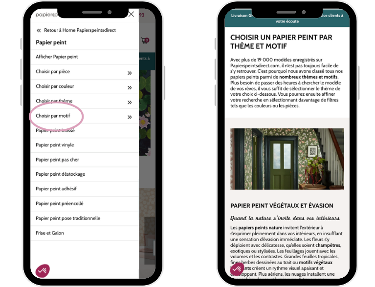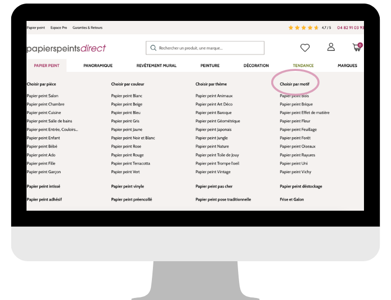 Enfin, vous pourrez visionner toutes les tendances directement depuis le menu. Ces dernières sont classées par thématiques en fonction des motifs présents sur le papier peint.