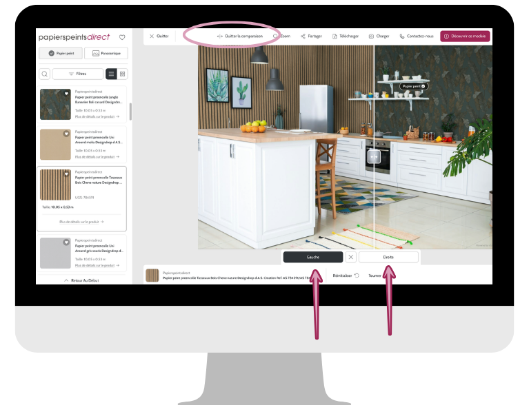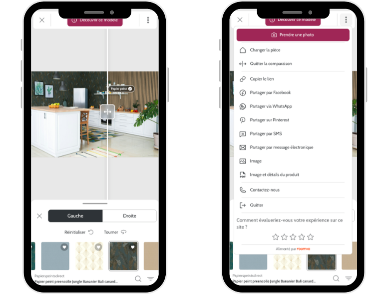 Vous accédez alors à un affichage gauche / droite avec un curseur central que vous pouvez faire glisser. Sélectionnez un papier peint pour chaque côté et comparez-les directement dans votre pièce.