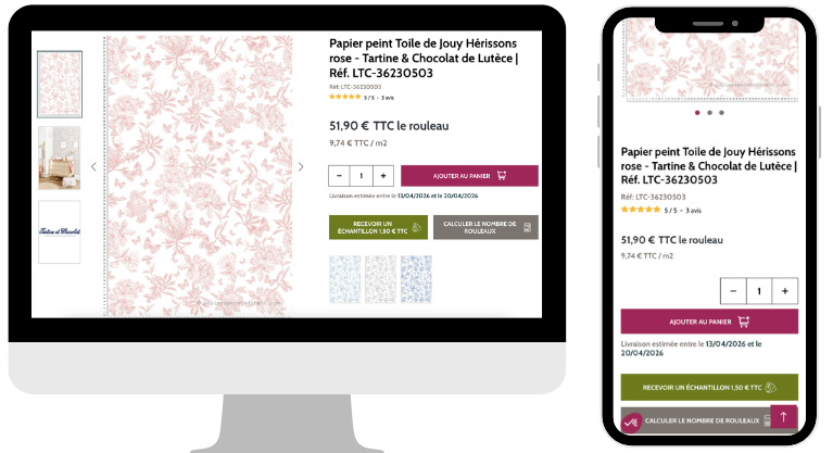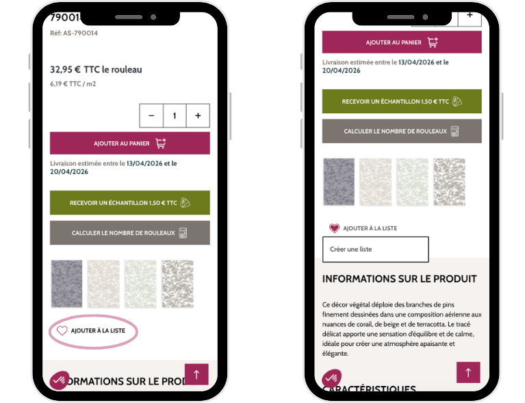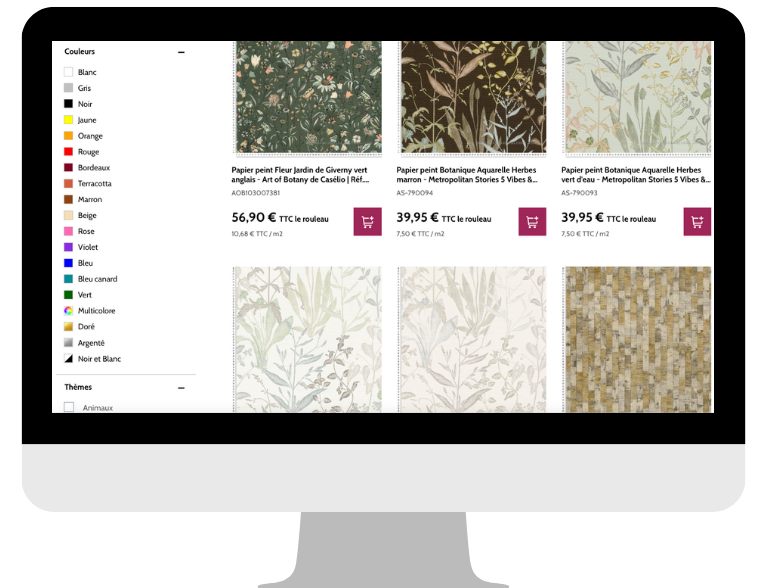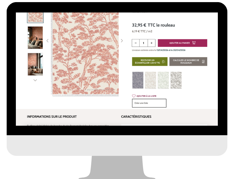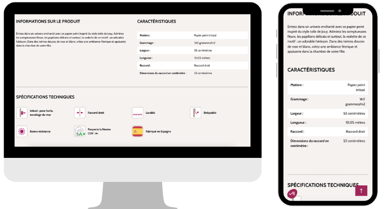 Chaque produit est accompagné d’un texte descriptif qui met en avant ses motifs, ses couleurs, ses textures et son style afin de vous aider à vous projeter plus facilement.