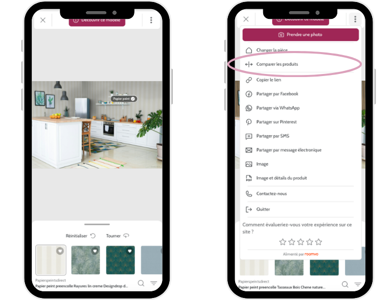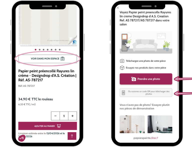 - Prendre une photo de votre pièce directement depuis votre téléphone