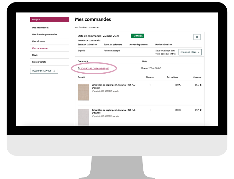 Votre facture sera disponible dans votre espace dès que votre commande aura été expédiée.