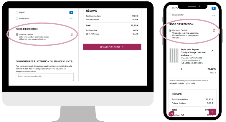 Vous verrez également l'affichage du prix de votre commande ainsi que le délai de livraison estimé.