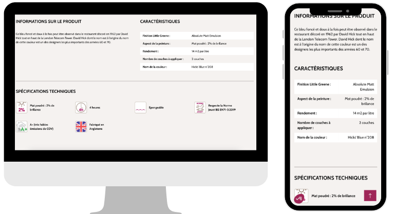 La deuxième partie de la fiche produit vous permet d'accéder à des informations plus détaillées et complètes.