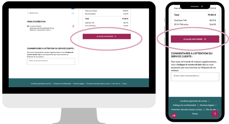 Une fois toutes les étapes du panier passées, vous arrivez à la validation finale.