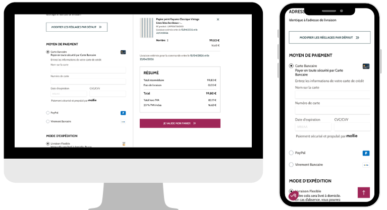 Si vous avez choisi un règlement par carte bancaire ou par PayPal, vous serez redirigé vers le site sécurisé de notre partenaire. Vous pourrez ainsi réaliser immédiatement votre règlement et votre commande sera validée.